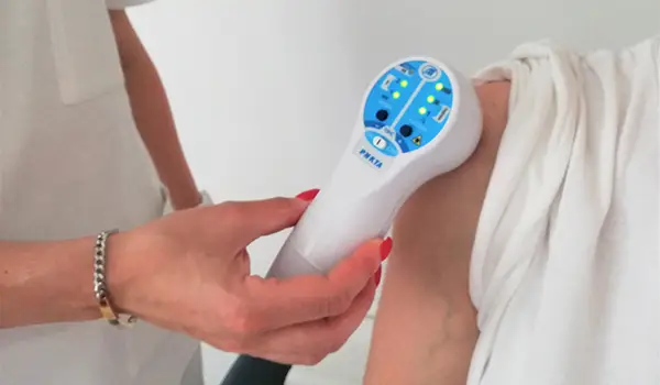 Laserski uređaj male snage delotvoran je u brzom ublažavanju bolova što se postiže posle 3-4 sesije u trajanju od 5-10 min. Prilikom tretmana bolnog mesta dolazi do poboljšanja lokalne cirkulacije krvi, povećanja isporuke kiseonika i odlaganja toksičnih materija.
